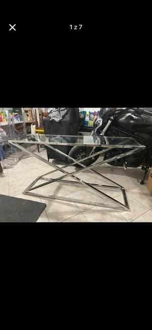 Chromowana konsola z szklanym blatem Dlugość 130cm Szerokość 40cm Wysokosc 70 cm Odbiór osobisty.